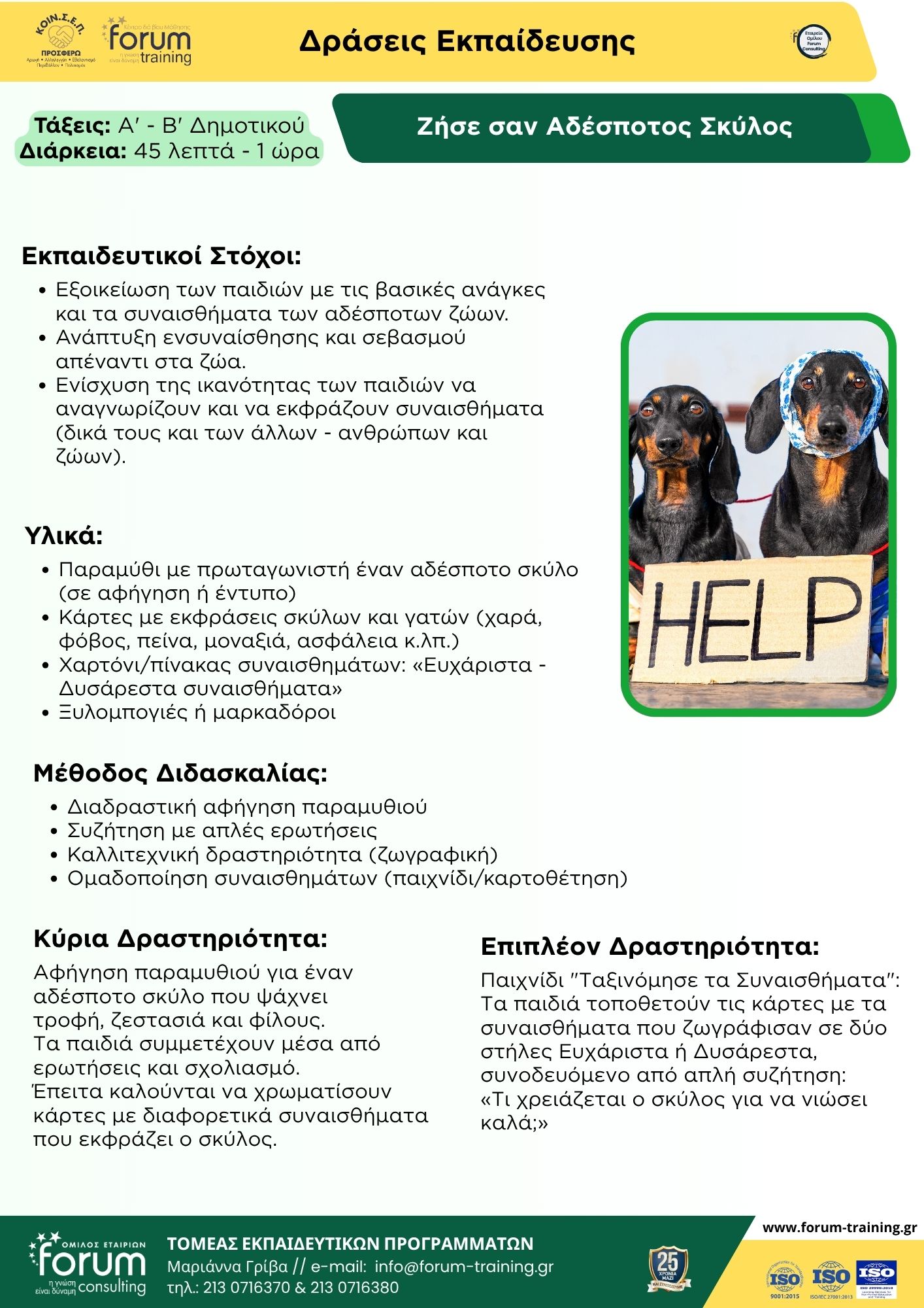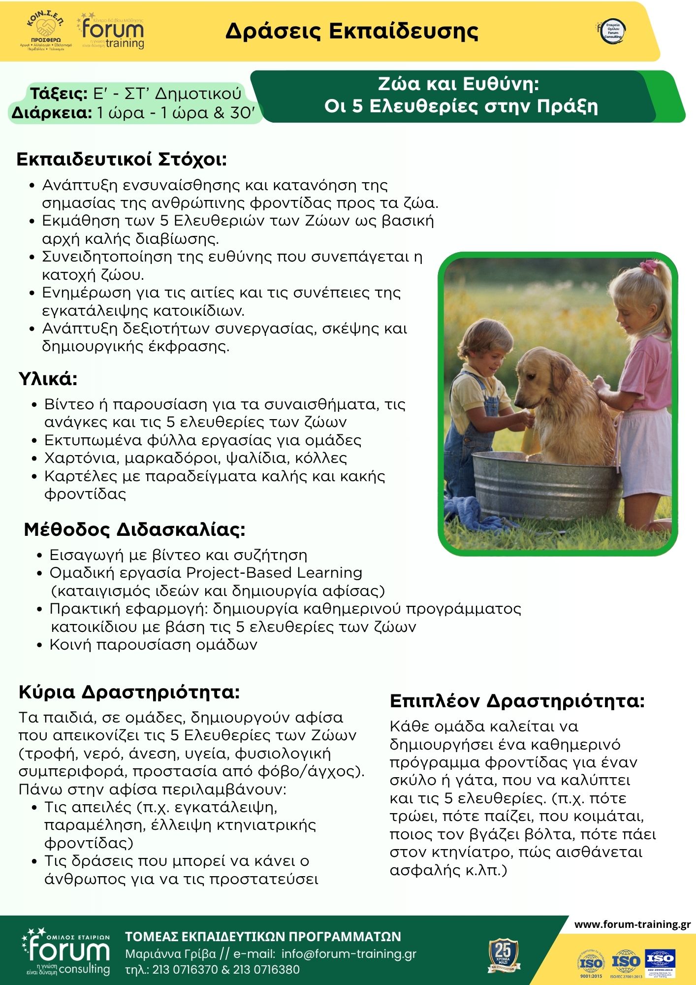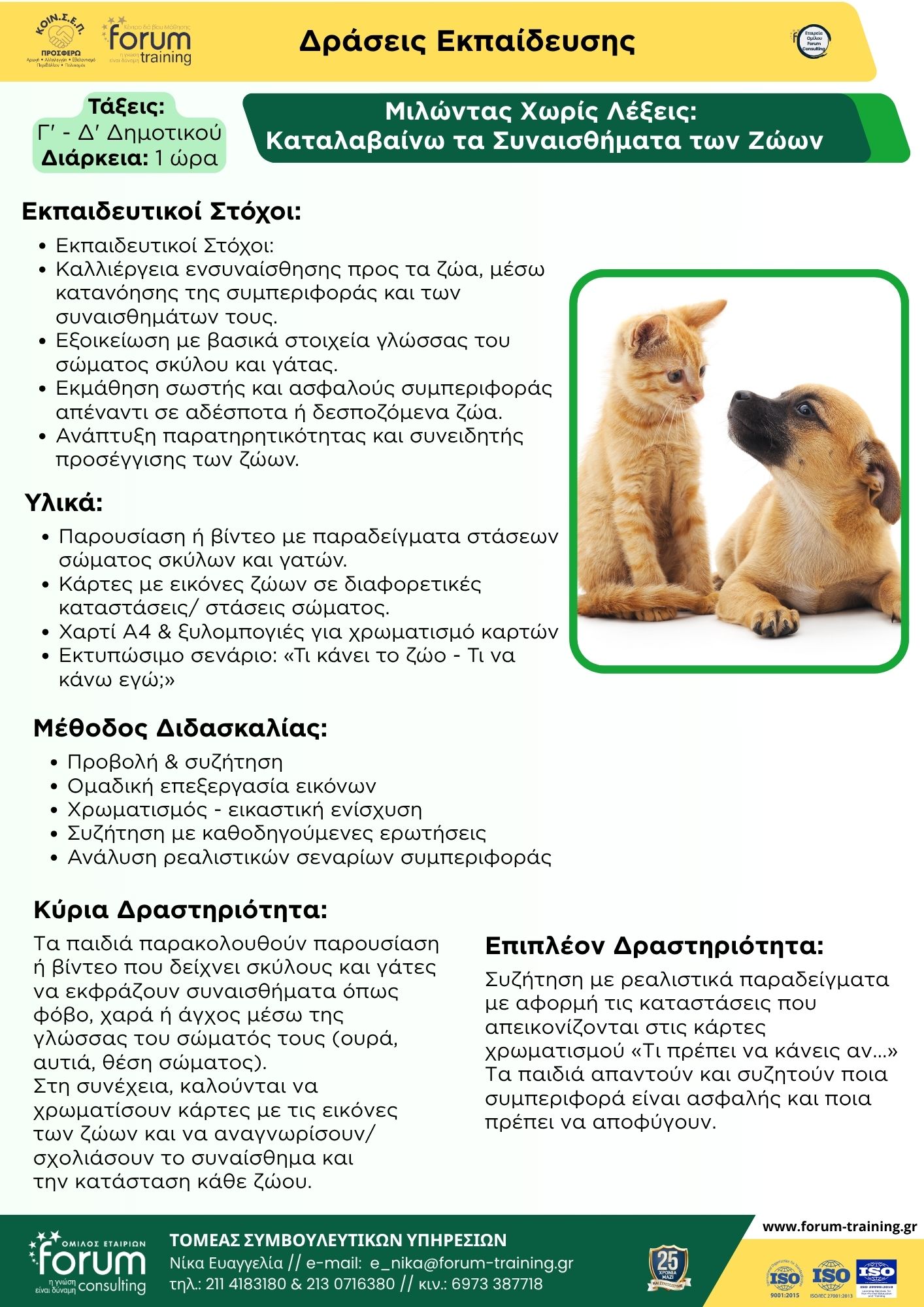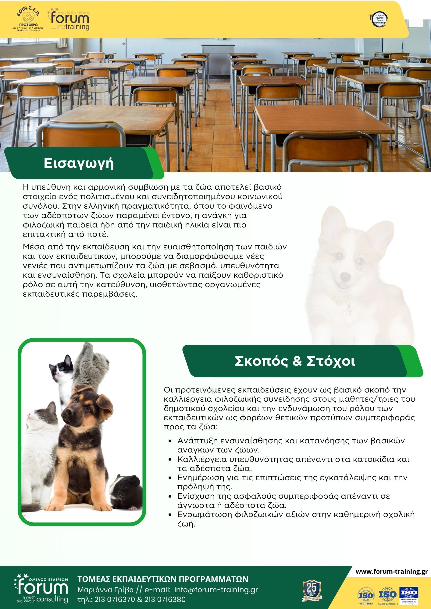 “Εκπαίδευση σε Σχολεία για την Υπεύθυνη Συμβίωση με τα Ζώα”